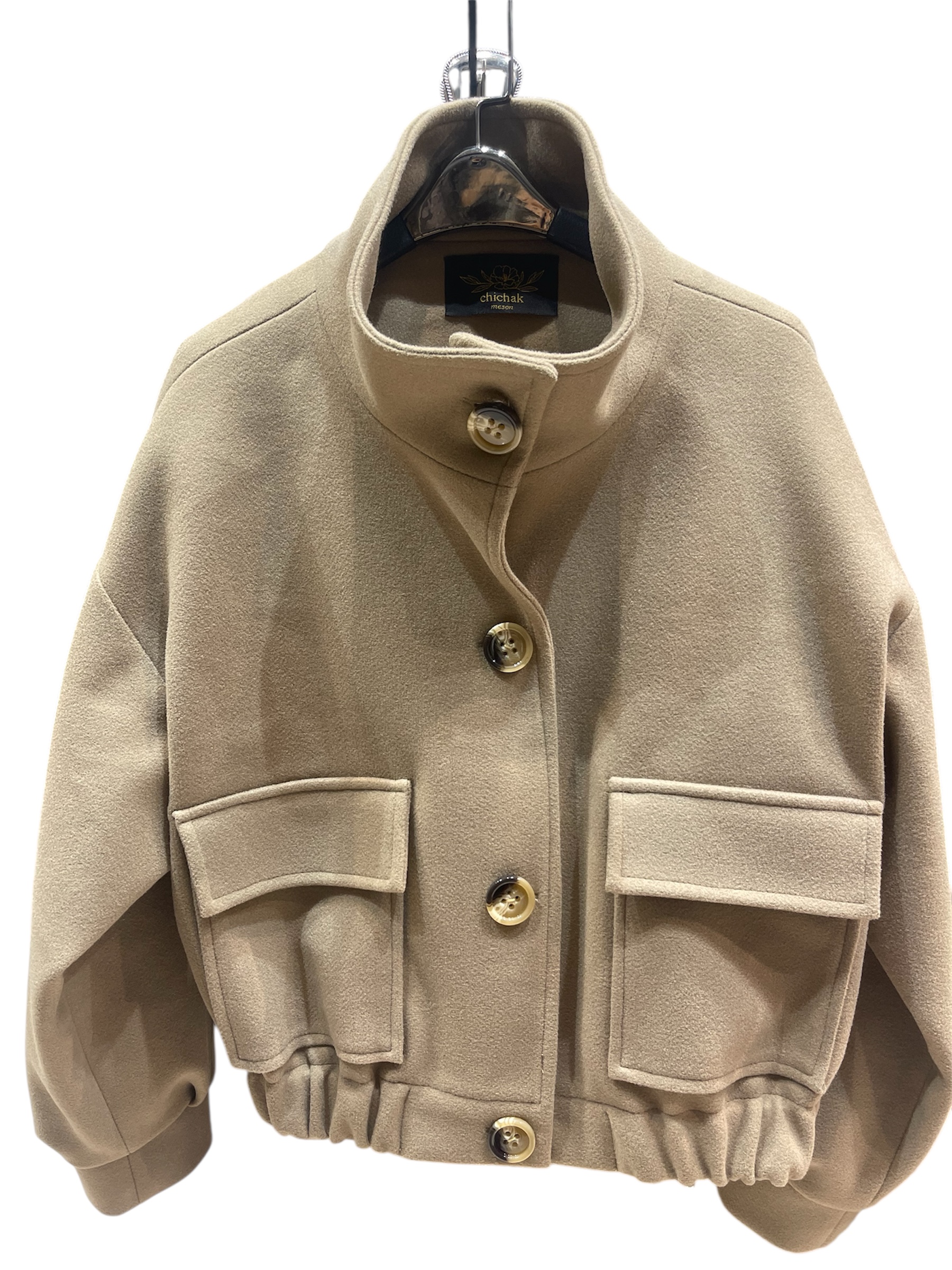 بامبر جکت زنانه فوتر یقه قیفی جلو دکمه دار برند chichak